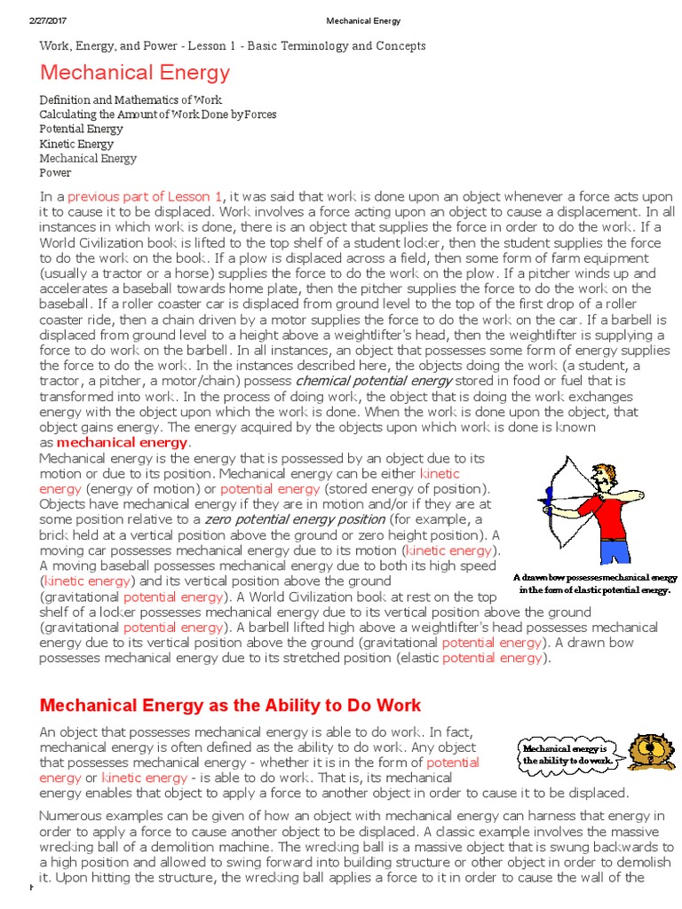 2 Forms Of Mechanical Energy - Mechanical Energy Lesson Plan 2.3 3rd-5th Grades State ... - For example, the singer's voice starts with vibrations of his vocal cords, which are folds of tissue in his throat.. We saw earlier that mechanical energy can be either potential or kinetic. Explain how the general definition of energy as the ability to do we saw earlier that mechanical energy can be either potential or kinetic. All moving objects produce mechanical energy. And finally, an object with mechanical energy is able to do work on. 23454 answered the question on march 20, 2018 at 15:29.